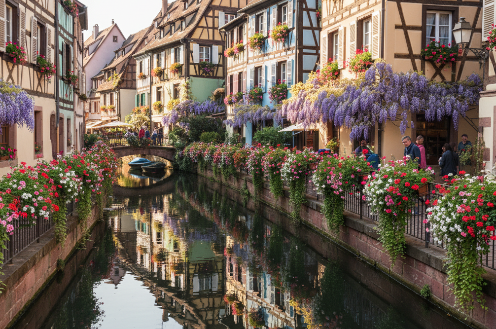 Located in the Alsace region, Colmar is a whimsical village that looks as if it were plucked from the pages of a children's book. Its medieval half-timbered houses, painted in a rainbow of pastel colors, are even more charming when adorned with spring blossoms. The canals of the "Little Venice" district are lined with blooming wisteria and geraniums, creating a picture-perfect scene. Spring in Colmar is celebrated with Easter markets and wine festivals, as the Alsace region is famous for its vineyards. You can rent a small boat to glide along the canals or simply wander through the winding streets, discovering hidden courtyards and quaint shops. The milder weather is perfect for exploring the nearby Alsatian Wine Route, where the vineyards are just beginning to show new growth.