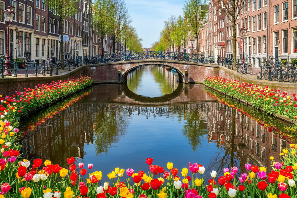 Amsterdam is synonymous with tulips, and there is no better time to see this than in spring. While the famous flower fields are just outside the city, Amsterdam itself is awash with color. The historic canal houses, charming bridges, and winding streets are made even more beautiful by the vibrant tulips that fill planters, parks, and window boxes.